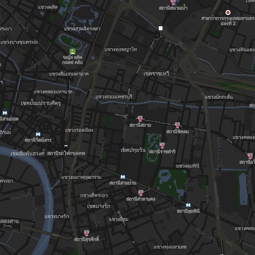 แผนที่โทนมืด สไตล์ Monochrome ที่ใช้สีดําเป็นหลัก เหมาะกับผลิตภัณฑ์ที่อยากให้จุดต่าง ๆ บนแผนที่เห็นได้ชัด ใช้สีของ POI แบบฉูดฉาด หรือผลิตภัณฑ์ที่มีธีมโทนมืด แผนที่สไตล์นี้จะเป็นตัวชูโรงให้งานของคุณออกมาโดดเด่นเรียบหรูแบบที่ไม่มีใครเหมือน